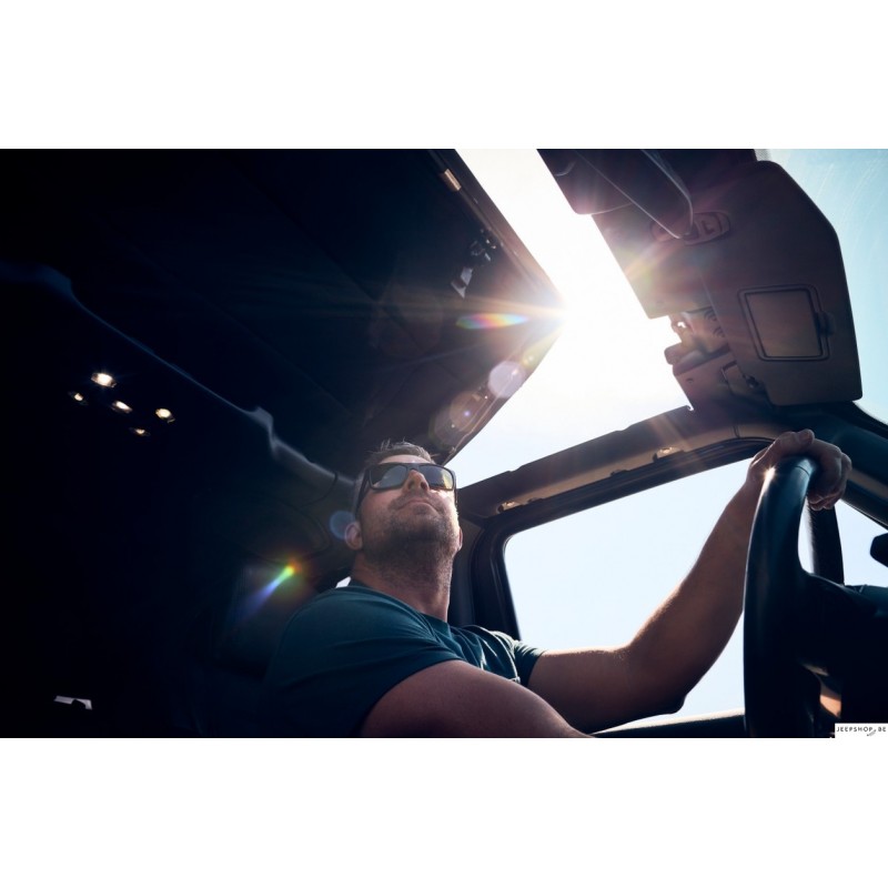 Pourquoi limiter vos aventures quand vous pouvez équiper votre Wrangler d'un toit ouvrant panoramique et vous offrir une liberté totale ? Le toit ouvrant électronique (eTop) vous apporte un confort optimal : ouvrez et fermez-le en toute simplicité grâce à deux loquets et une simple pression sur un bouton. Que vous sillonniez la ville, exploriez les sentiers ou profitiez de la plage, le toit ouvrant électronique s'adapte à vos envies et vous offre une maîtrise totale de votre expérience de conduite, par tous les temps.